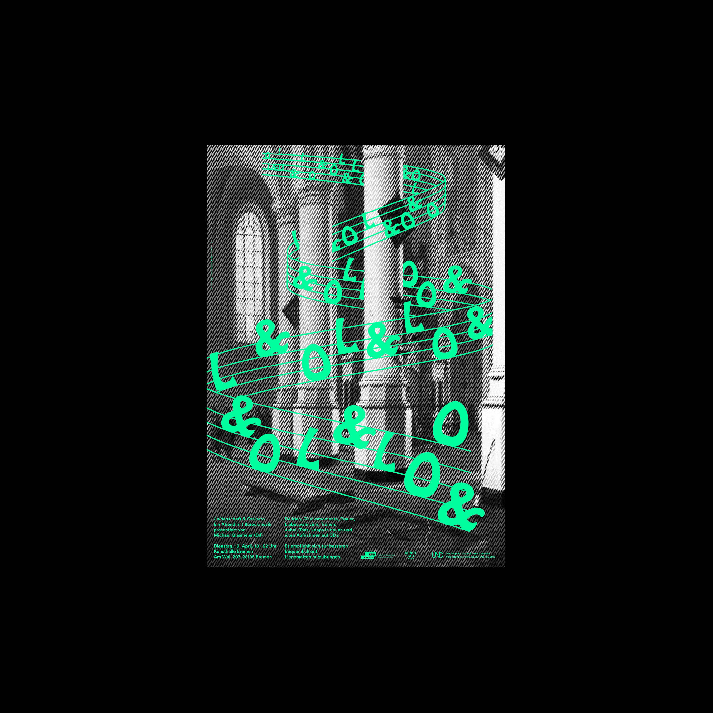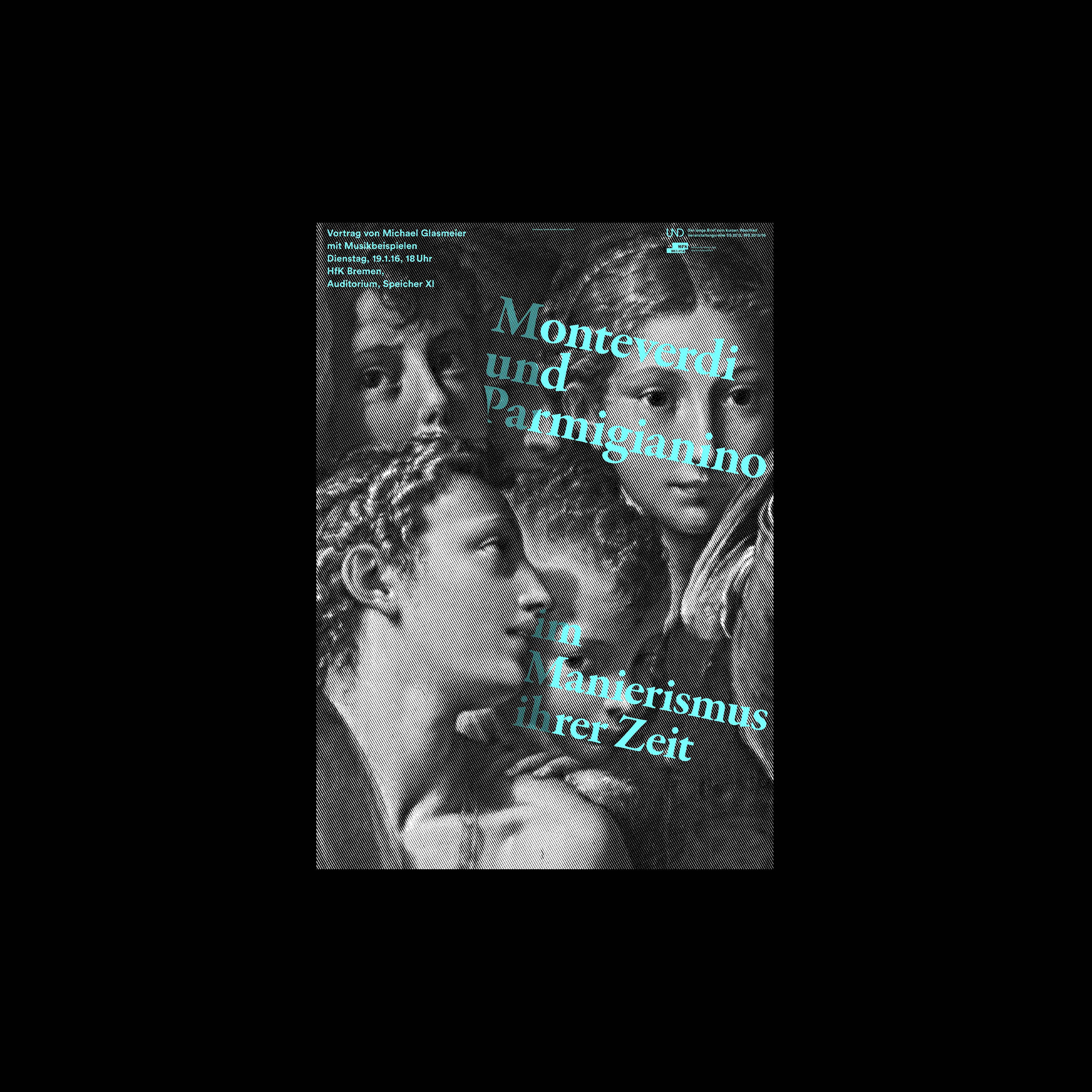 Posterdesign for the last lectures of Professor Michael Glasmeier at HfK Bremen. The design is inspired by the content of the lecture. While the typography is changing on every poster, the image is always in black and white and creates a moment of recognition. Designed together with Fabian Brunke.