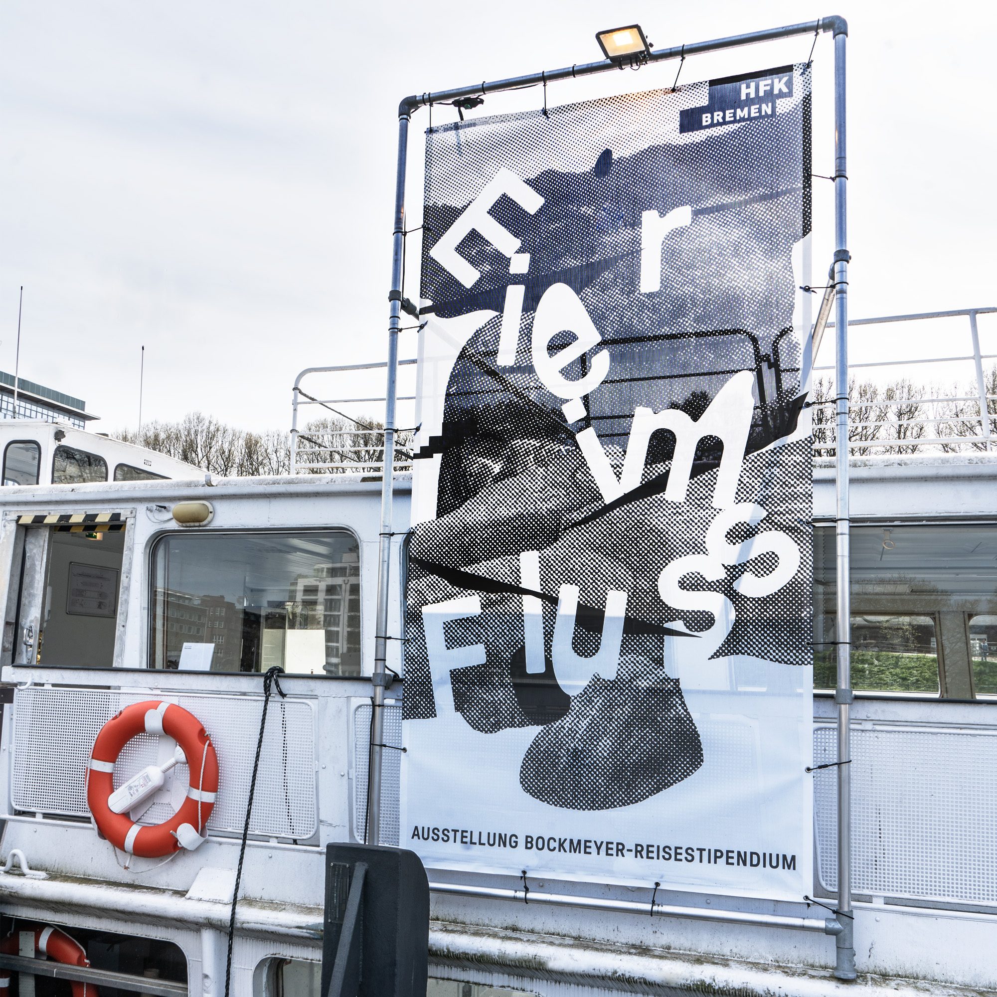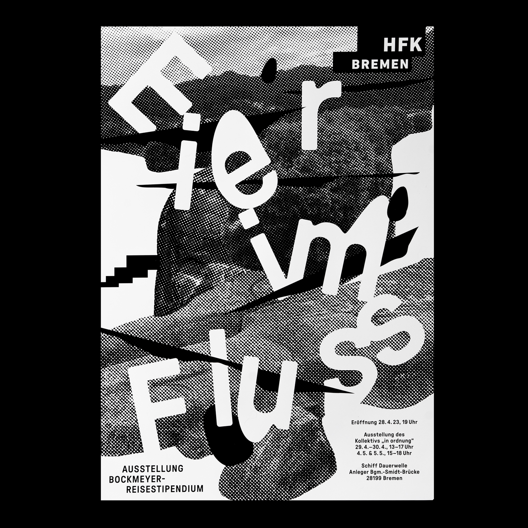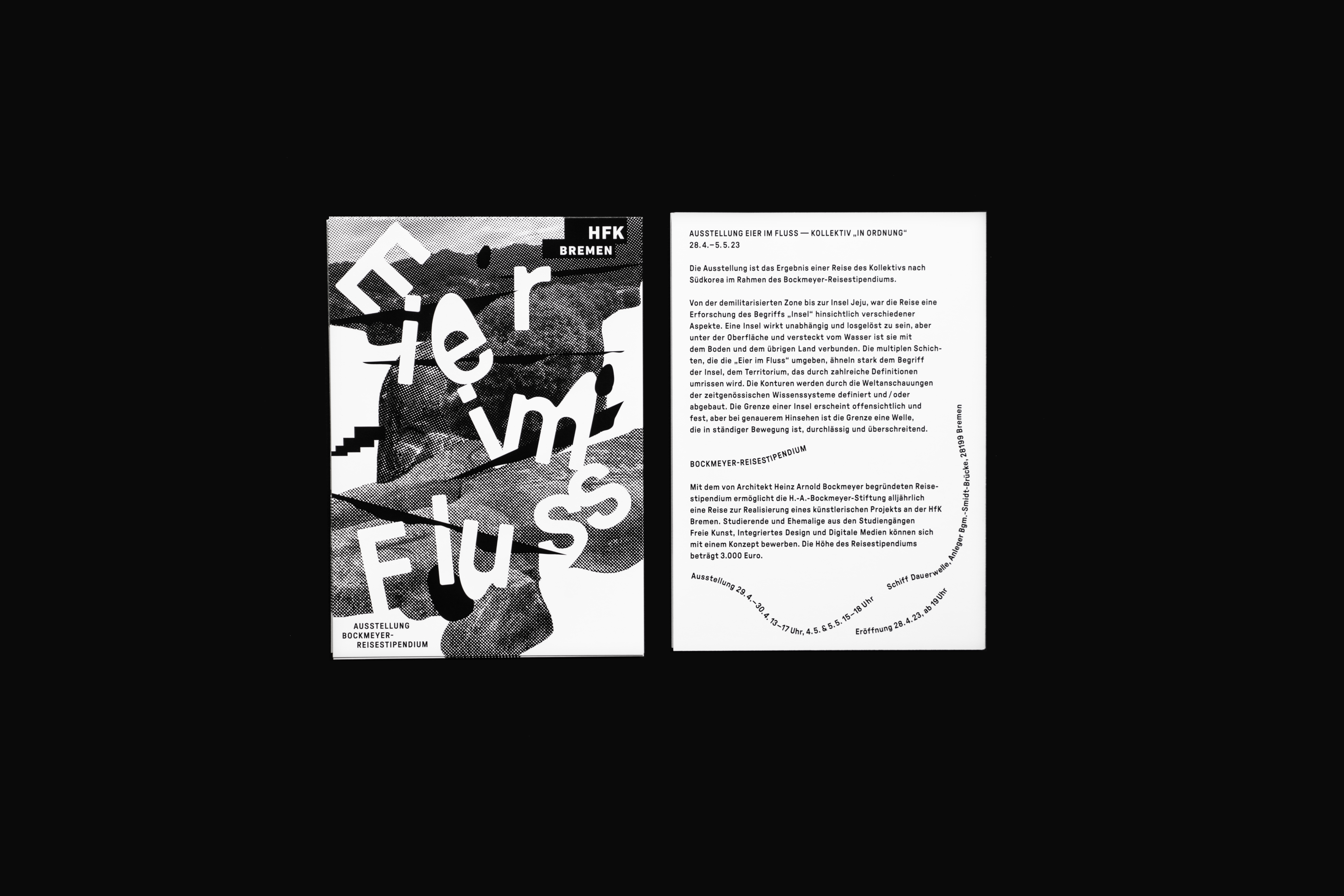 Poster-, Flyer- and Bannerdesign for the exhibition “Eier im Fluss” by the artist collective “inordnung”. The exhibition took part on the ship “Dauerwelle” in Bremen. In their exhibition the artists explore the term of an island and it’s borders in various aspects.