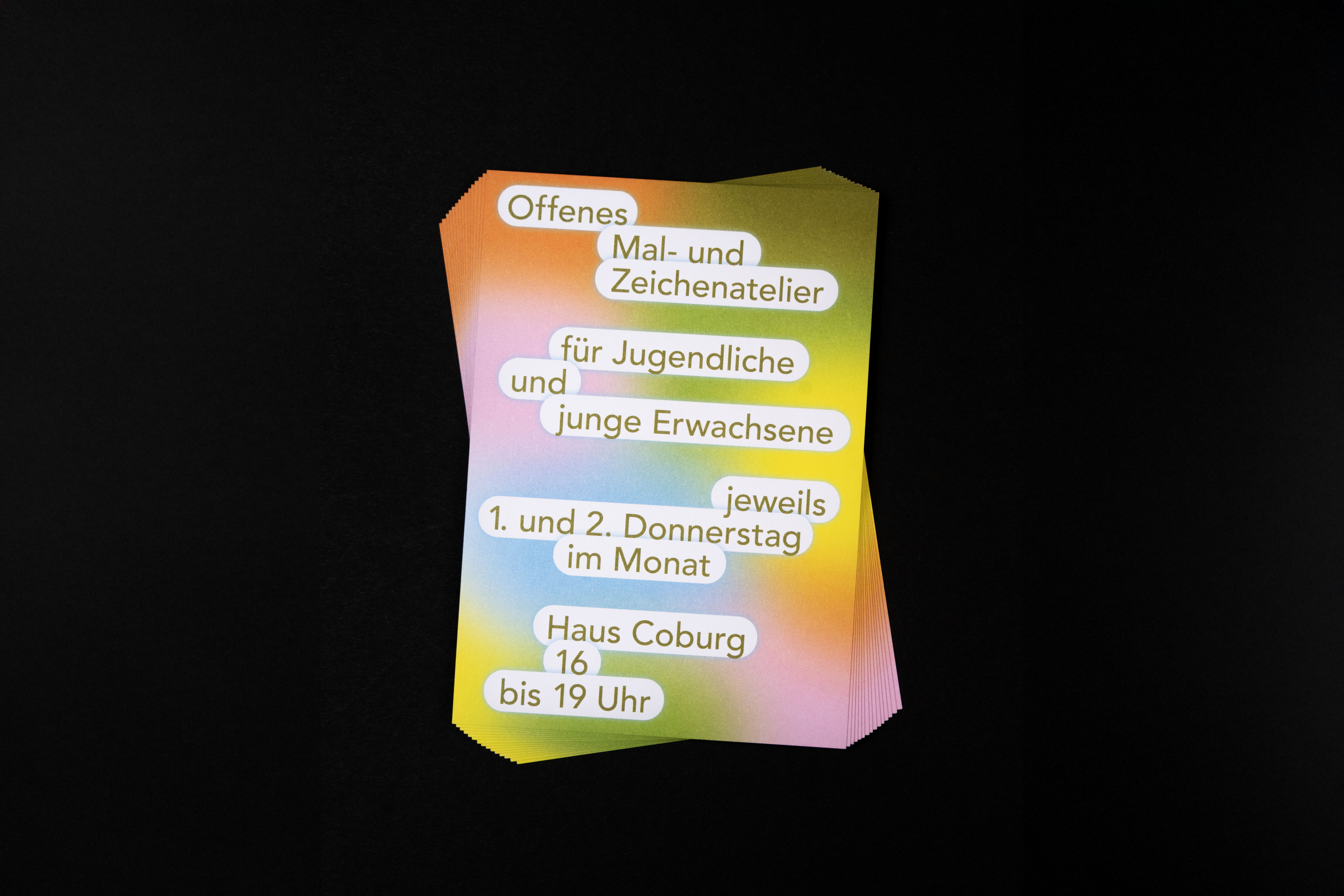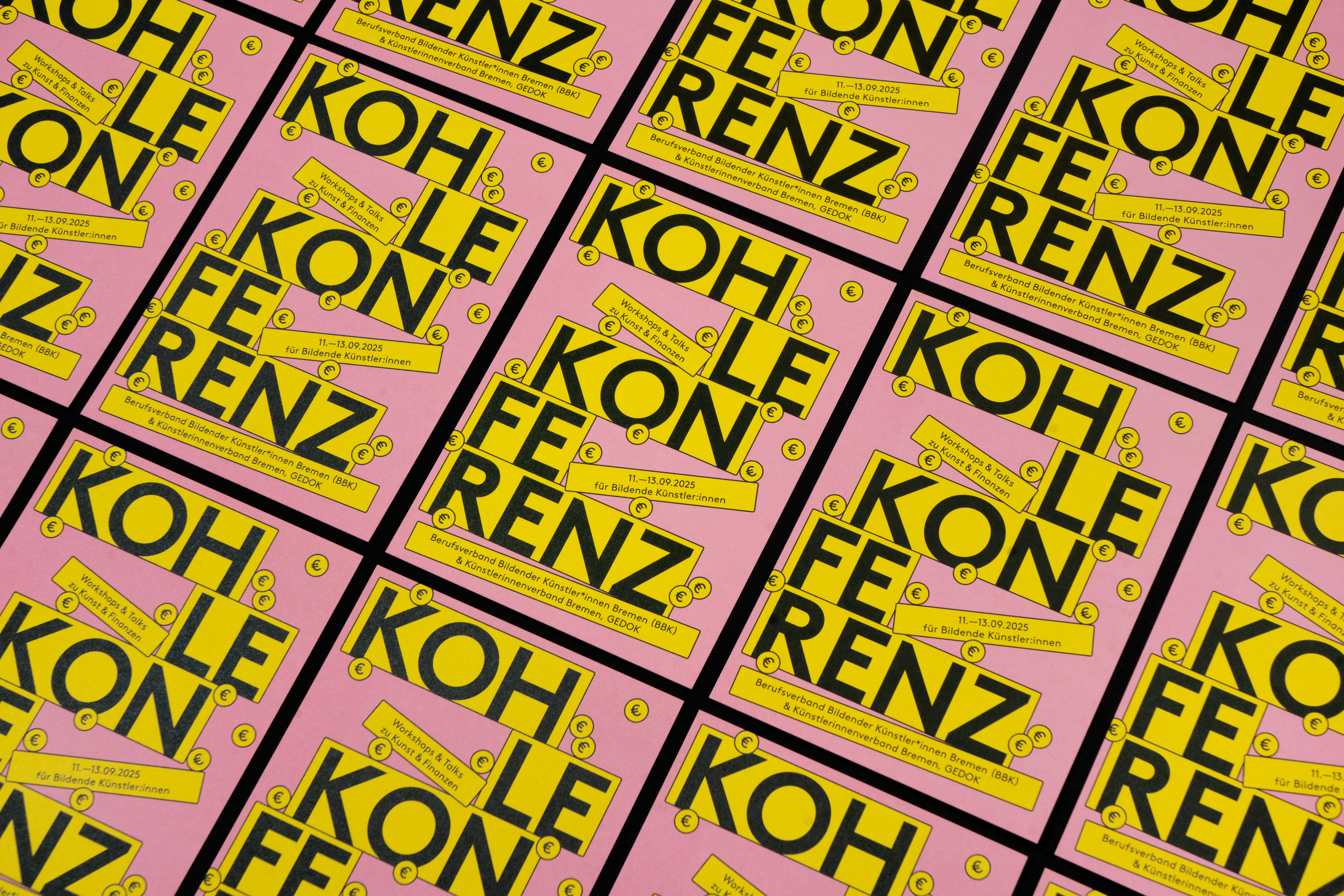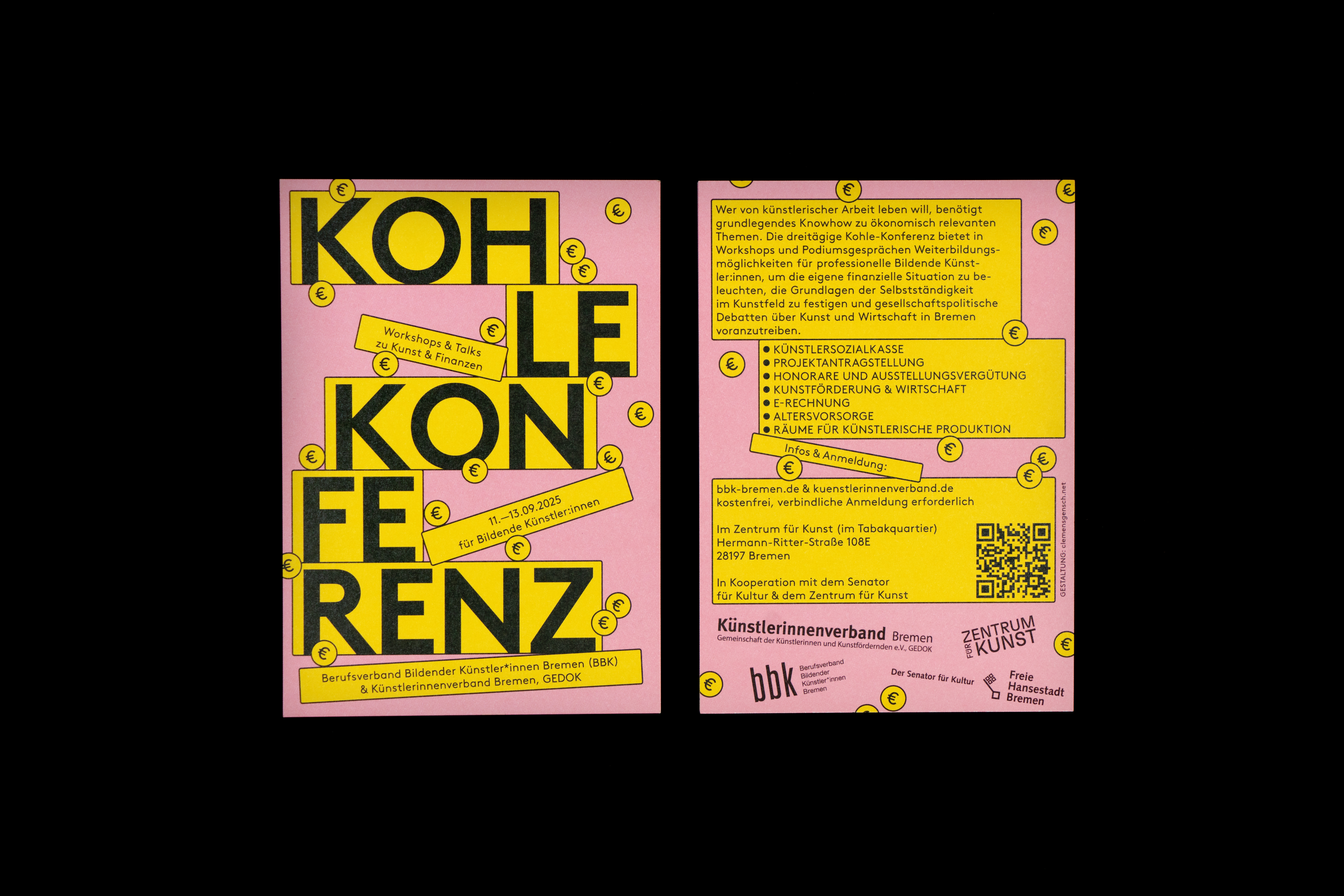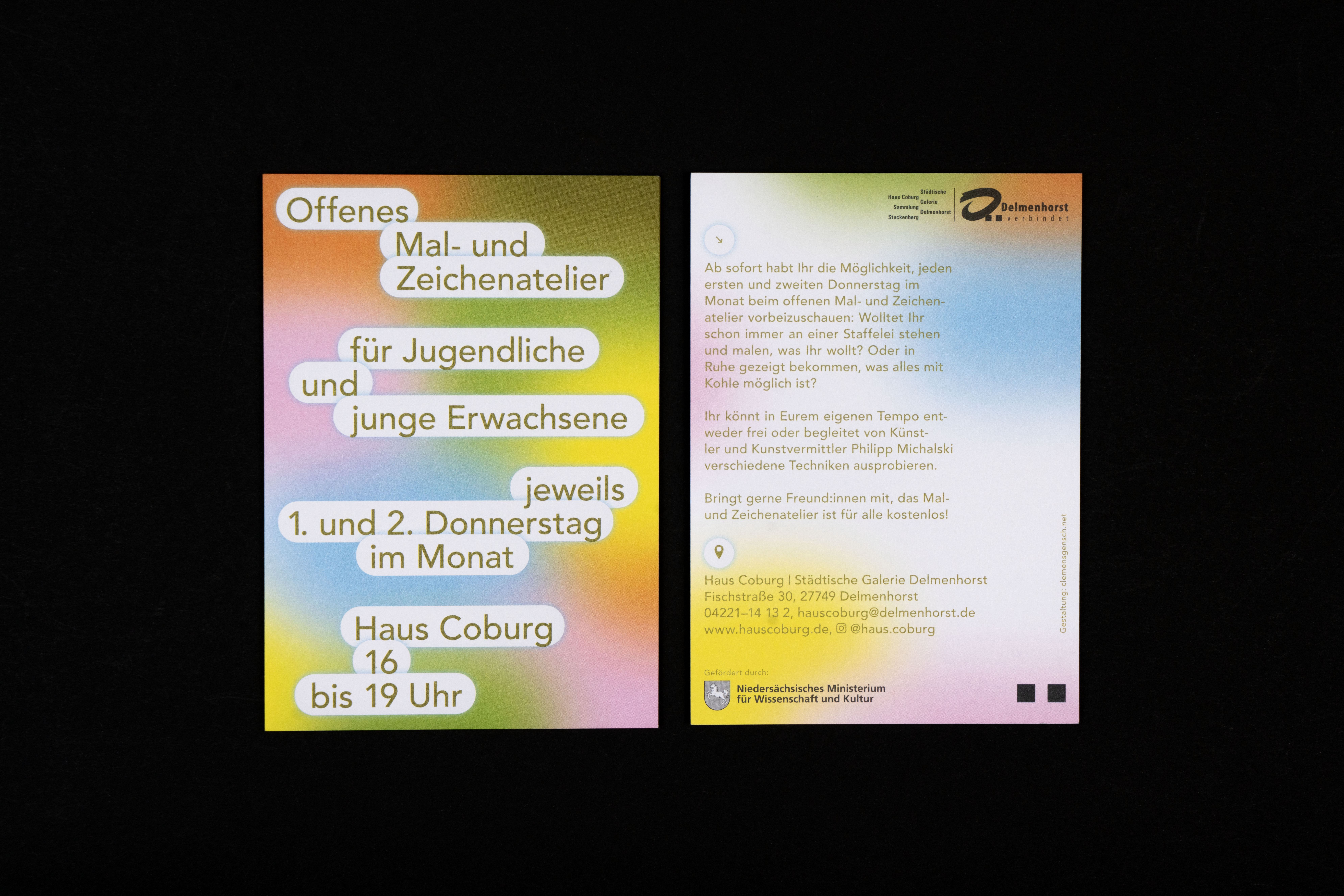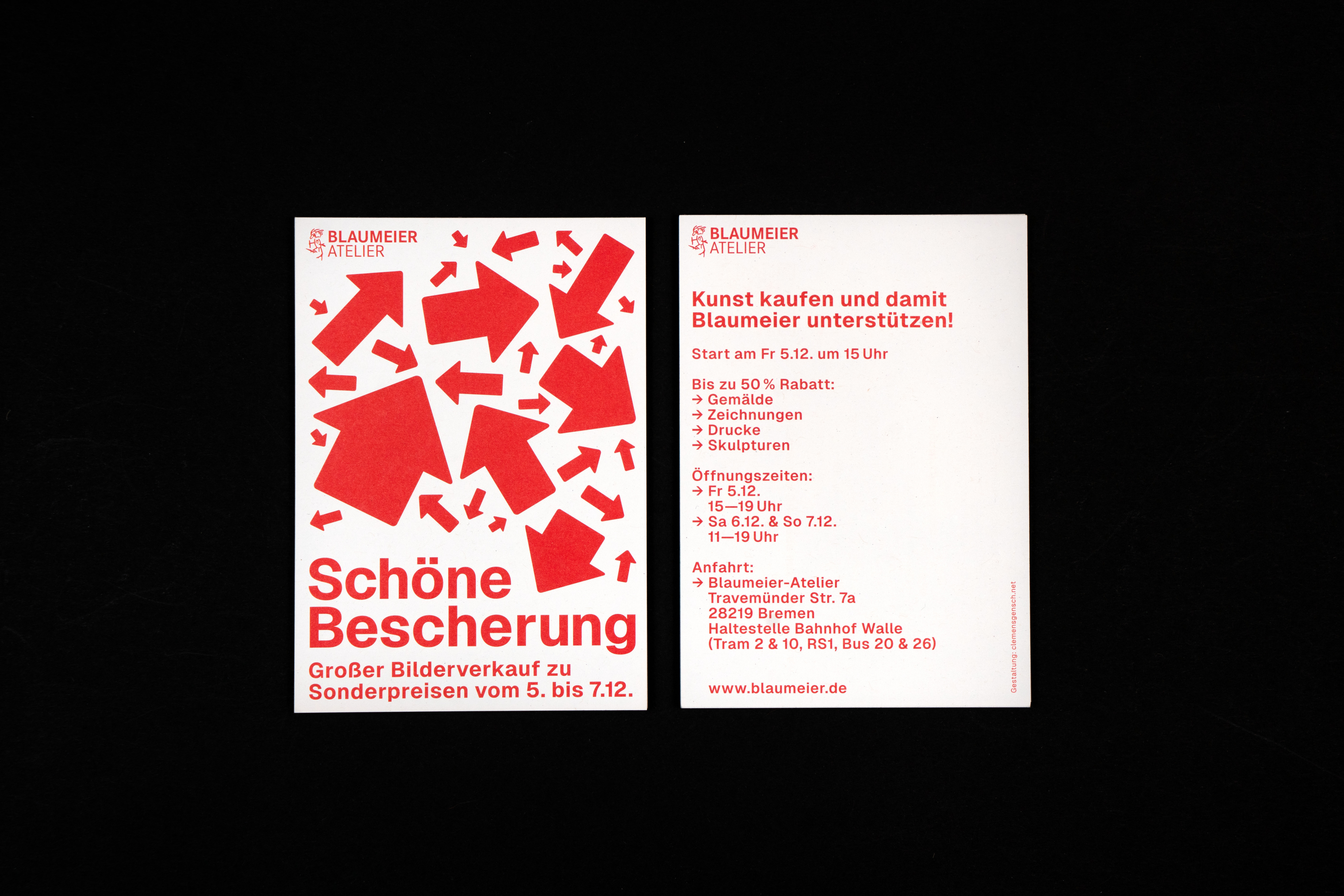 Different Flyer designs for various occasions: a painting workshop at Haus Coburg, an art sale at Blaumeieratelier, and a conference for fine artists organized by the Künstler:innenverband Bremen GEDOK & BBK Bremen.