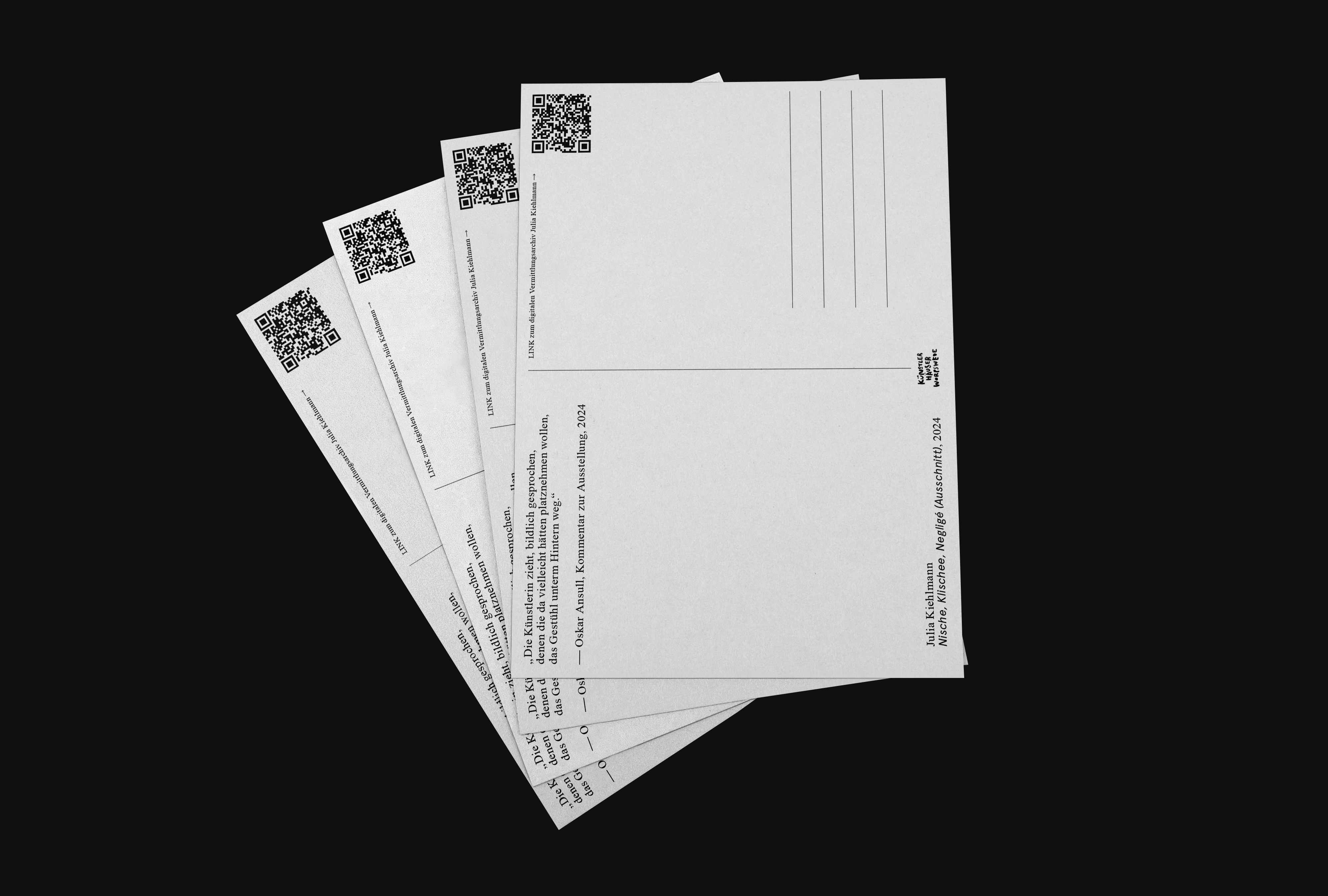 Graphic Design for Postcards, Posters and Social Media Posts for various events at Künster:innenhäuser Worpswede. The Postcards show work of the Artist Julia Kiehlmann.